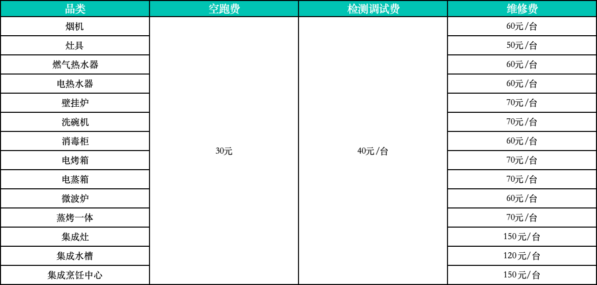 四、廚衛(wèi)電器安裝輔材市場終端收費標準